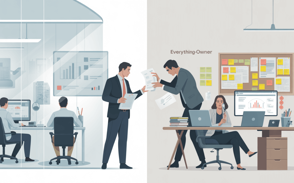 - Kockázatok: A munkaterhelés óriási. A stratégiai és taktikai feladatok állandó harcban állnak az időért, és gyakran a sürgős taktikai tűzoltás győz a fontos stratégiai tervezés felett. A skálázódáskor ez a modell fenntarthatatlanná válik.