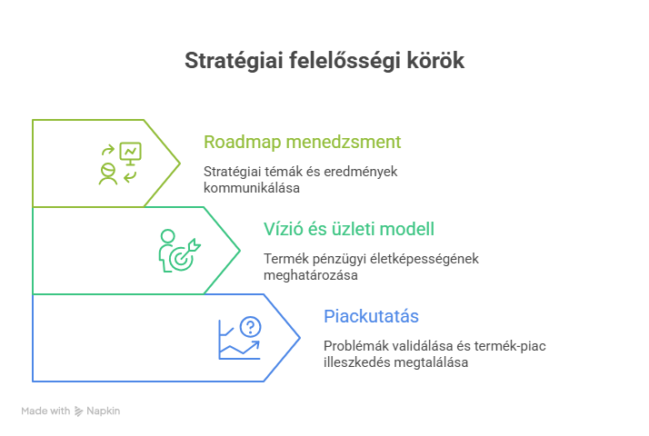 - Roadmap menedzsment: A termék roadmap a Product Manager legfontosabb kommunikációs eszköze. Fontos megérteni, hogy a modern roadmap nem egy dátumozott funkciólista (Gantt-diagram), hanem stratégiai témák (themes) és elérendő eredmények (outcomes) sorozata. A Product Manager feladata a roadmap folyamatos frissítése és kommunikálása a stakeholder-ek (menedzsment, sales, marketing) felé.