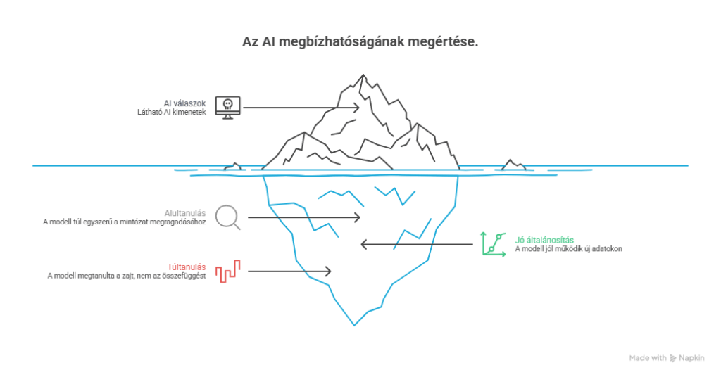 Ezzel a három forgatókönyvvel – alultanulás, jó általánosítás, túltanulás – a zsebedben van egy keret, amivel megértheted, miért működik néha az AI bámulatos jól, és miért mond máskor nonszenszt.